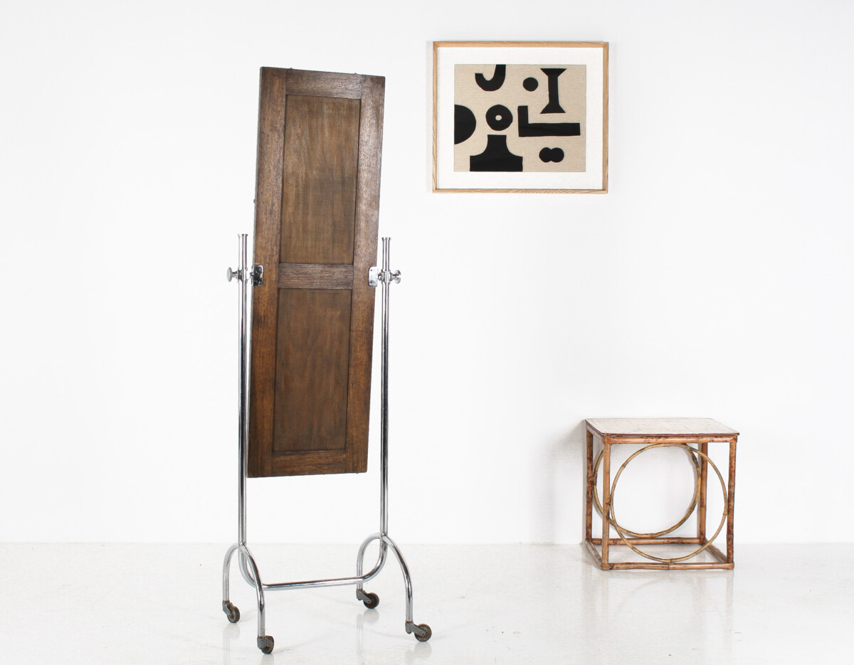 1960s Mid Century Industrial Chrome Floor Standing Cheval Mirror