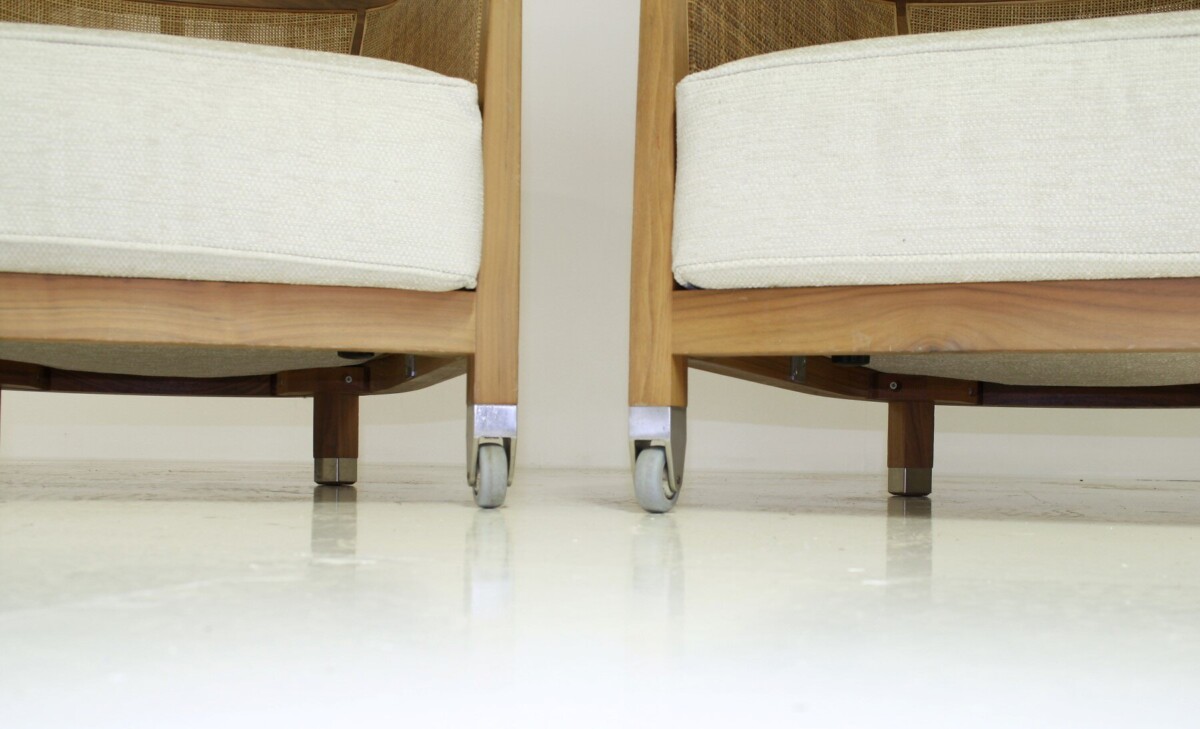 A refined interior armchair, the Mozart chair exudes an outdoor charm and vague recollections of colonial times. Its light but sturdy metal and wood structure is contrasted by the use of woven reed, that lends it an air of uncommon finesse. Generous padding ensures luxurious comfort. Outfitted with practical front casters, the Mozart armchair can be moved with ease.