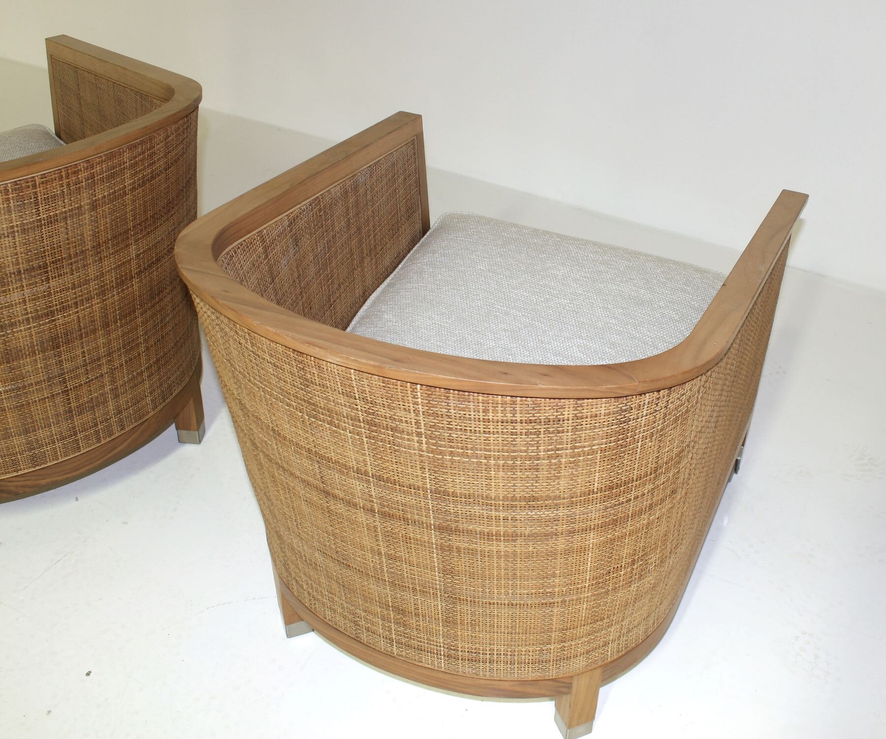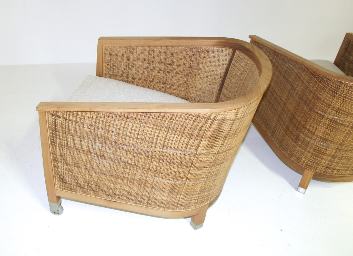 A pair of ‘Mozart’ woven reed/rattan armchairs by high-end Italian manufacturer Flexform.