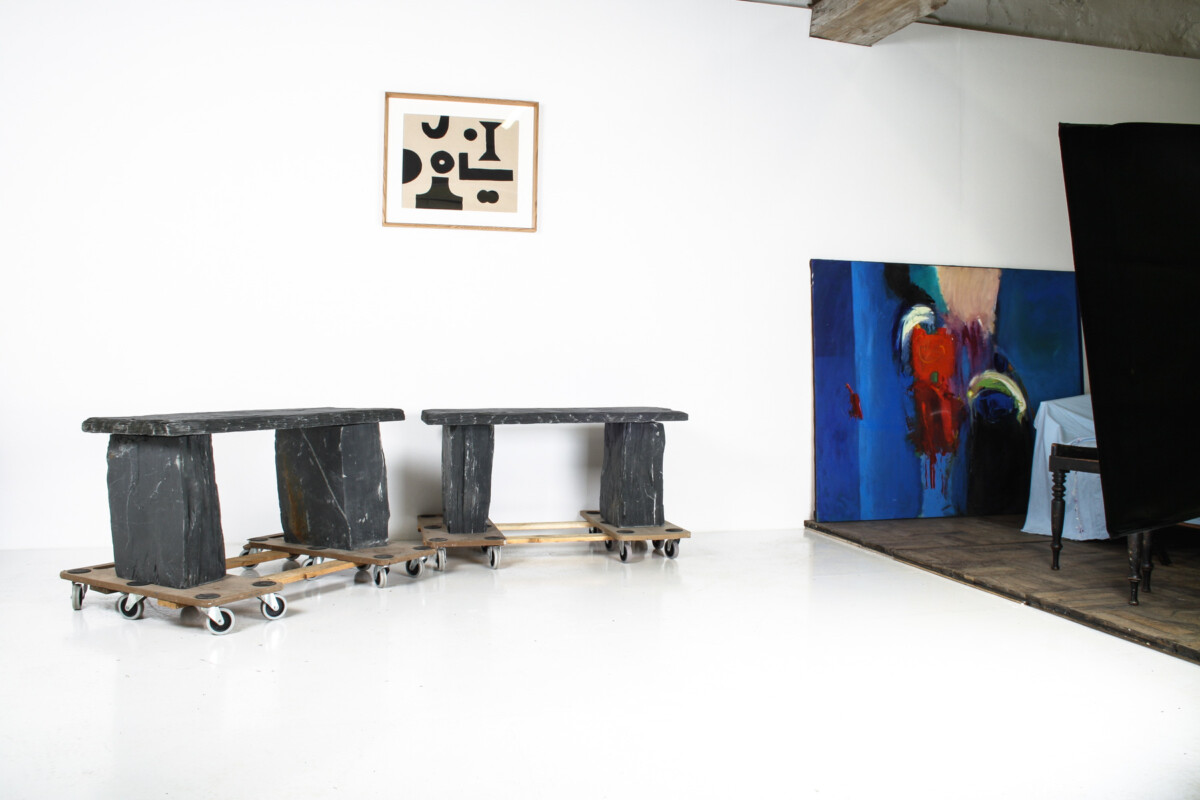 Each bench in this set features a riven surface, a result of the natural cleavage planes within the slate. This unique texture creates a rugged, tactile quality that beautifully complements the minimalist design, evoking a sense of wabi-sabi – the Japanese aesthetic that celebrates the beauty in imperfection. The natural variations and subtle gradations of colour within the slate add to the charm and individuality of each piece.