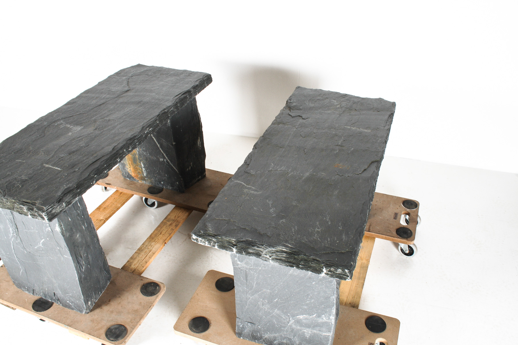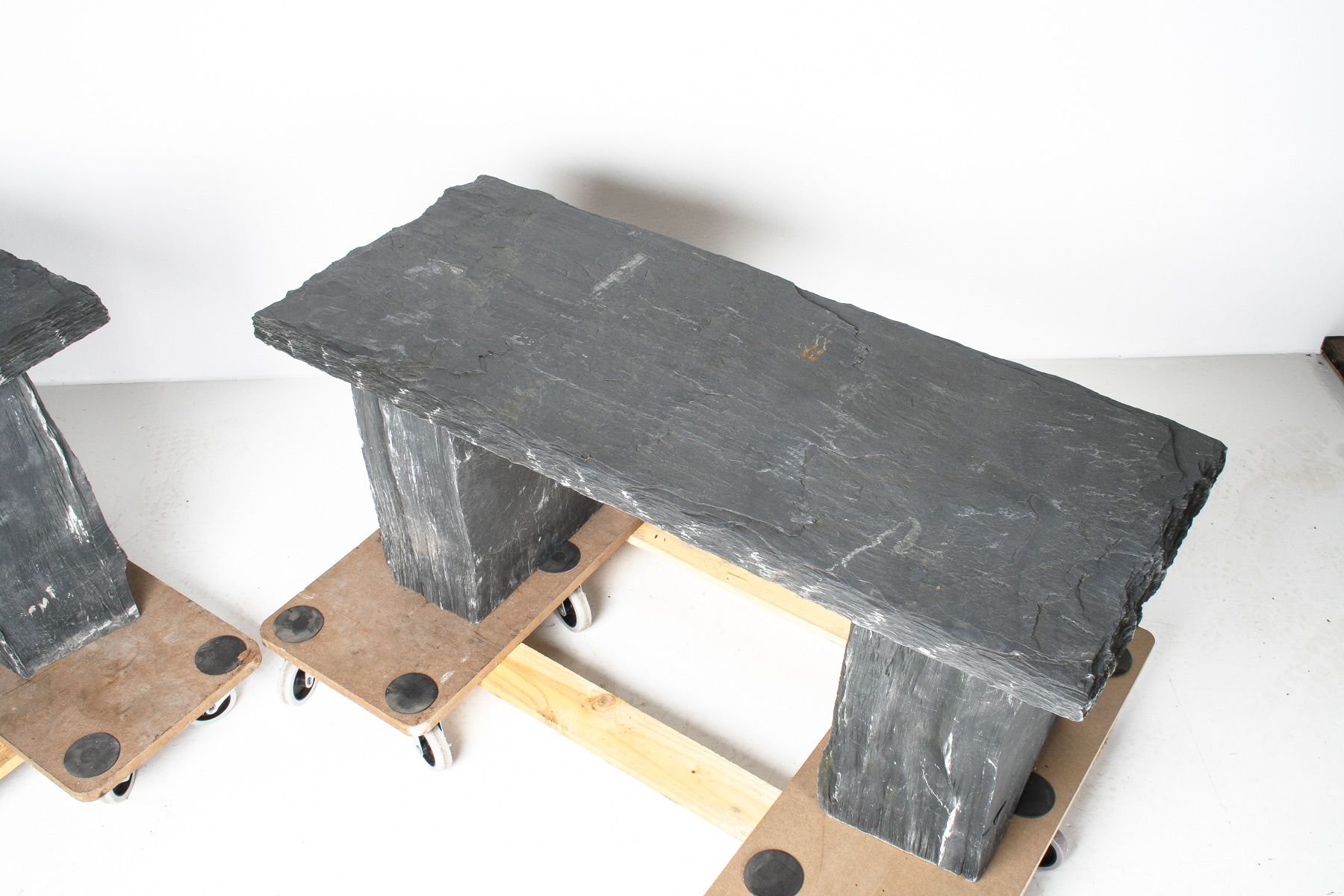 A Pair of Natural Wabi Sabi Stone Garden Bench Seats – Riven Welsh Slate