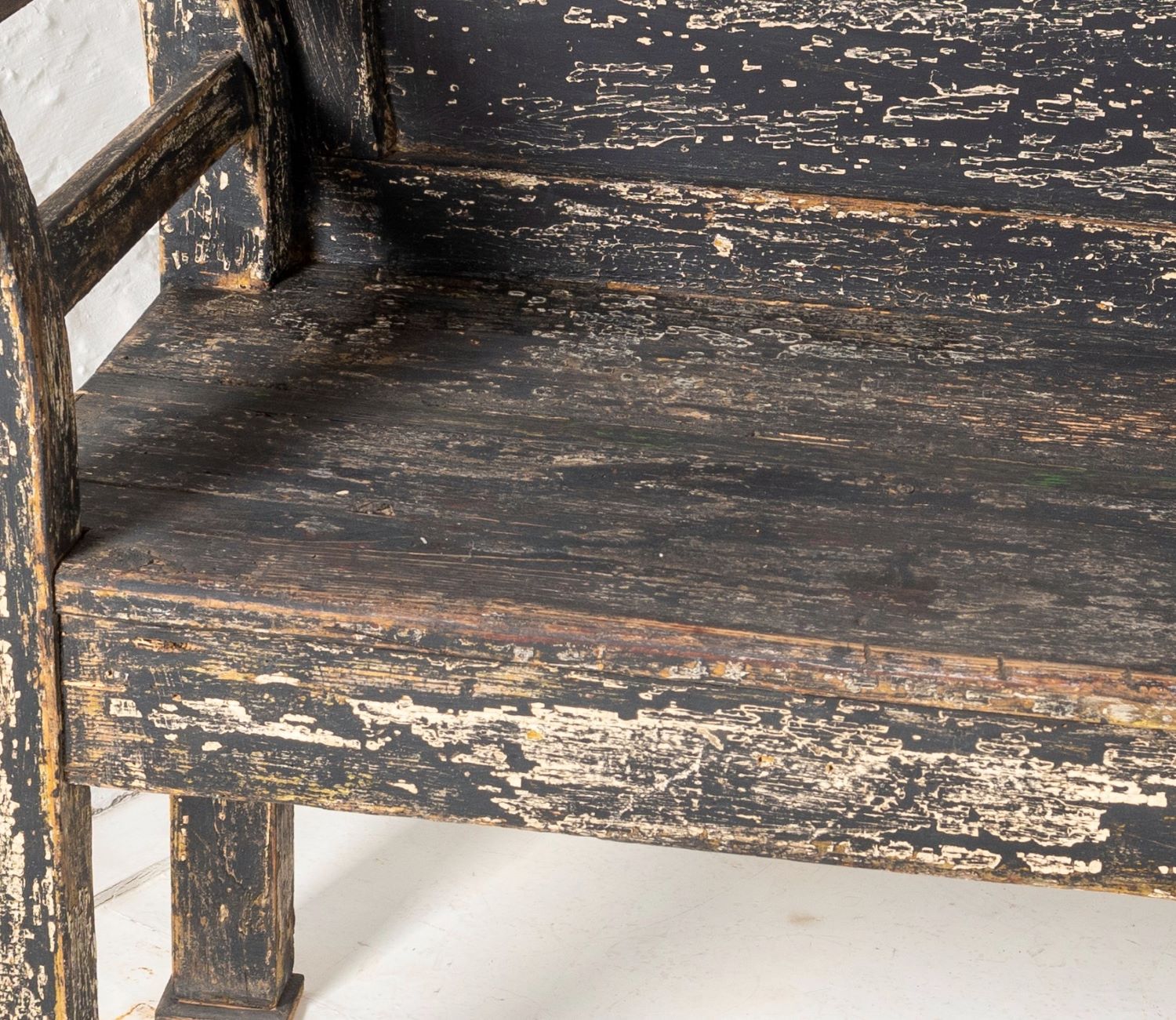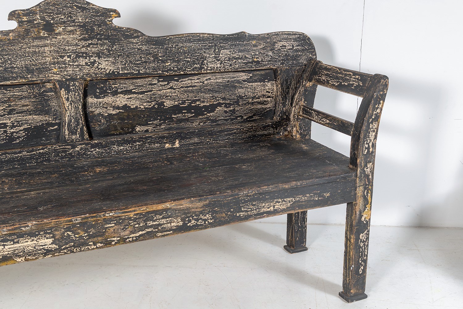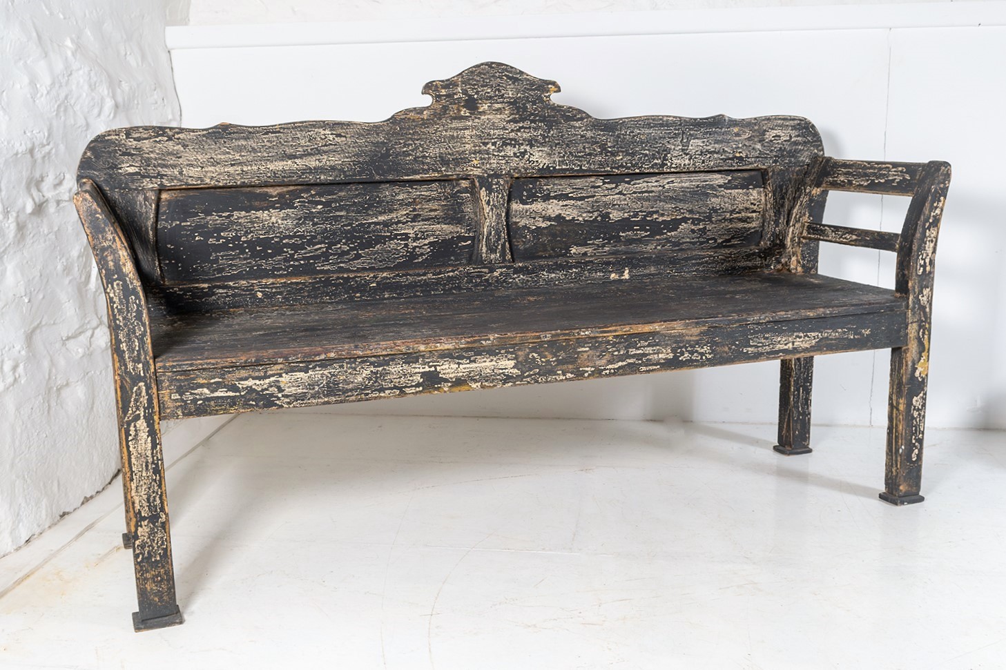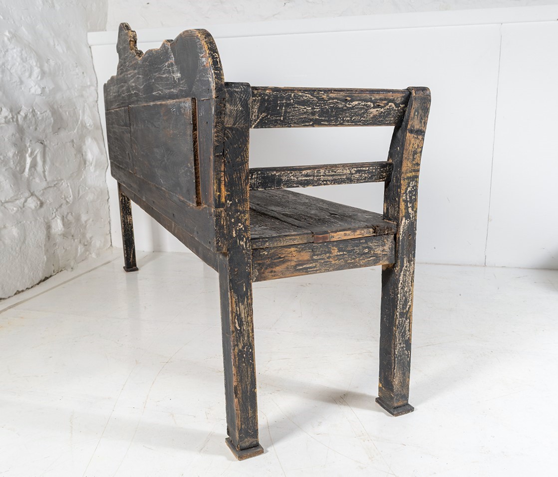 An Early European Settle Farmhouse Bench in old Paint | 3 Seater Bench