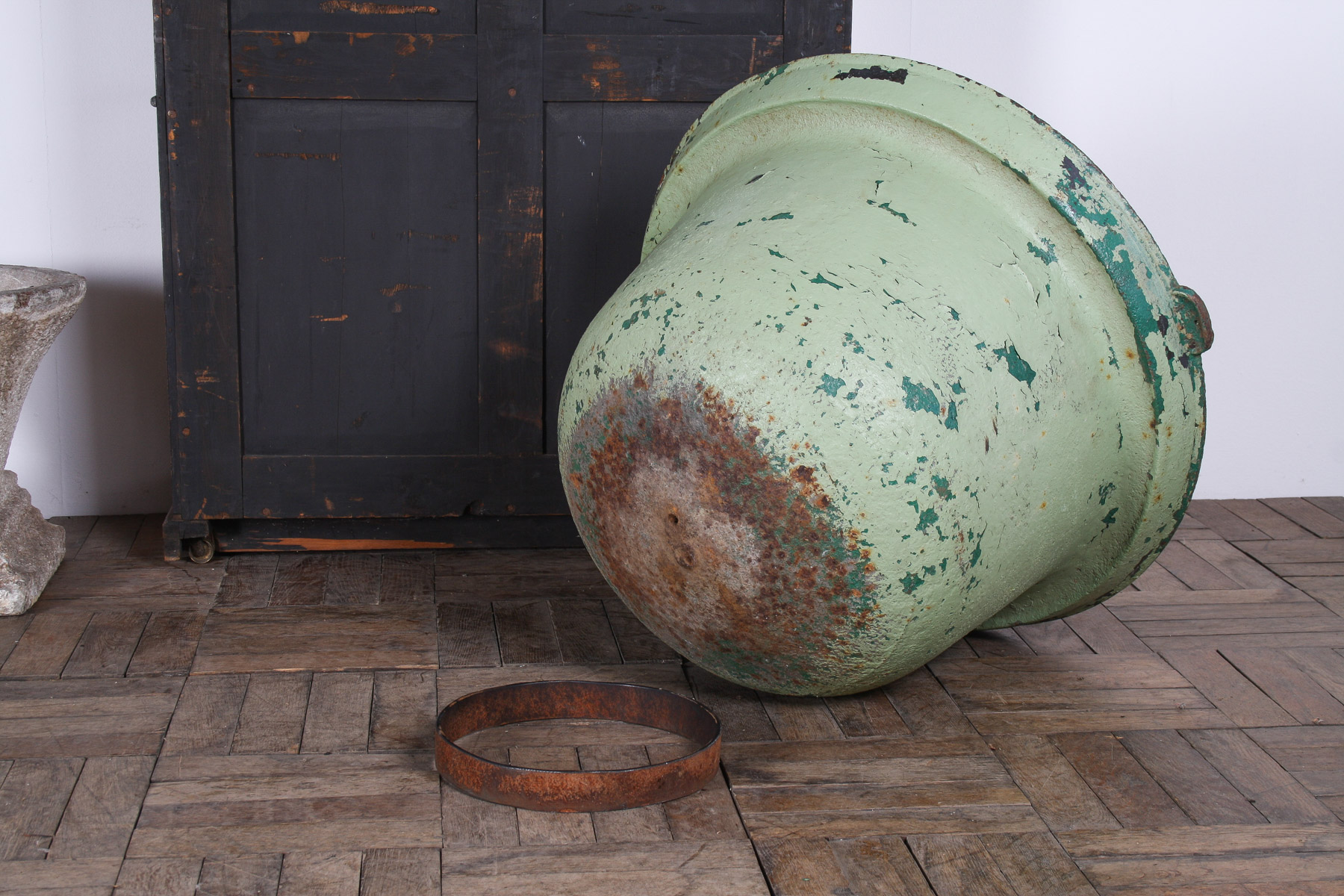 Introducing a Large Copper Green Painted Cast Iron Cauldron Garden Planter Pot of superb character, perfect for adding a striking focal point to your garden or indoor space. With a generous 30 inches in diameter, this piece commands attention.
