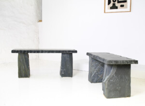 Pair of Natural Stone Welsh Slate Garden Bench Seats Wabi Sabi-08