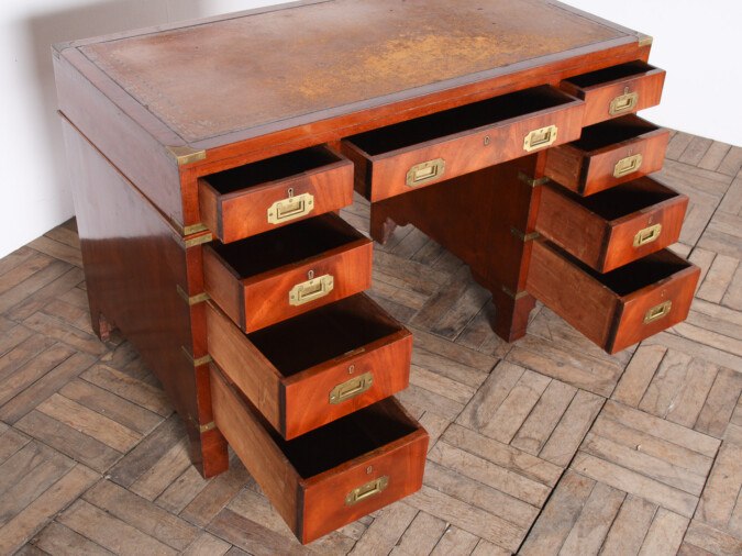 Original 19th-Century Antique British Campaign Desk Writing Table with Leather Top