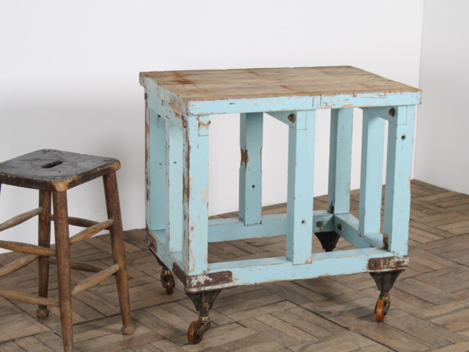 Small Rustic Patina Duck Egg Blue Industrial Bakery Worktop Table