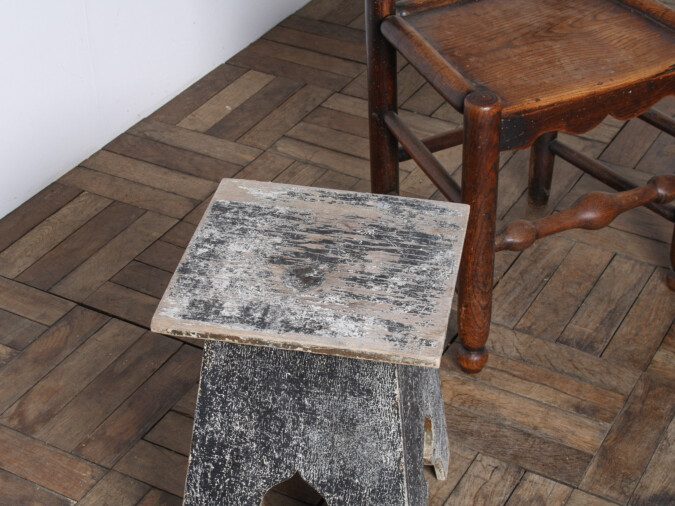 A Primitive 19th Century Wabi-Sabi Elm Side Table Display Stand or Stool